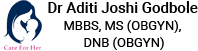Dr Aditi Joshi Godbole is one of the Best Gynecologists and Obstetricians in Kalyan, and has an experience of more than 7 years. Dr Aditi graduated MBBS from MIMER Medical College and Hospital Pune in 2013 and pursued MS from the Lokmanya Tilak Memorial Medical College and SionHospital. Dr Aditi Joshi Godbole worked as Senior Resident in the prestigious Seth GS Medical College, KEM Hospital. She further trained in Minimal Access Surgery and did her ICOG Fellowship in Endoscopy and Reproductive Medicine and Infertility from JK Women Hospital under the guidance of her mentor Dr S Krishnakumar.